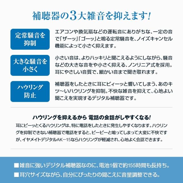 オムロン イヤメイトデジタル AK-15ノイズキャンセル機能 ノンリニア機能 デジタル補聴器 集音器 父の日 母の日 敬老の日 ギフト オムロン補聴器 あな型補聴器 ノンリニア 機能 雑音 ハウリング 抑制 小型 耳穴型 耳穴 聞こえ クリア