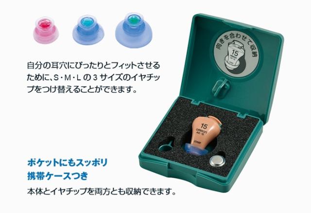 ■付属品:携帯ケース、イヤチップ(S・M・L各1個)、電池ホルダー×2(予備含む ※1個は本体に取り付け済み)、お試し用電池×1、ブラシ付きドライバー)