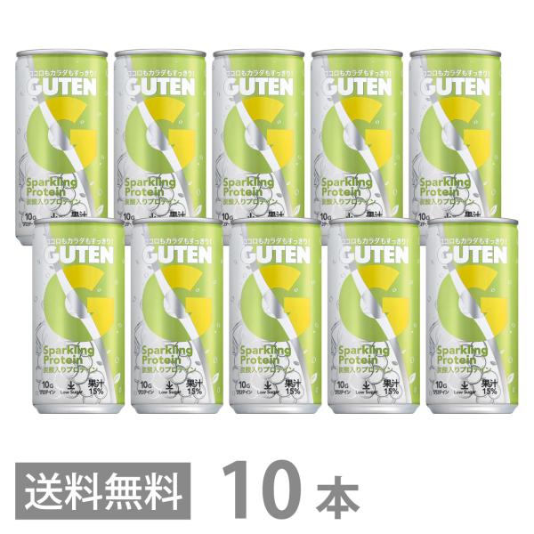 GUTEN グーテン 炭酸入り プロテイン 飲料 190ml×10本セット 送料無料 甘味料 保存料 着色料 無添加 アレルゲンフリー ドリンク ローシュガー ヴィーガン