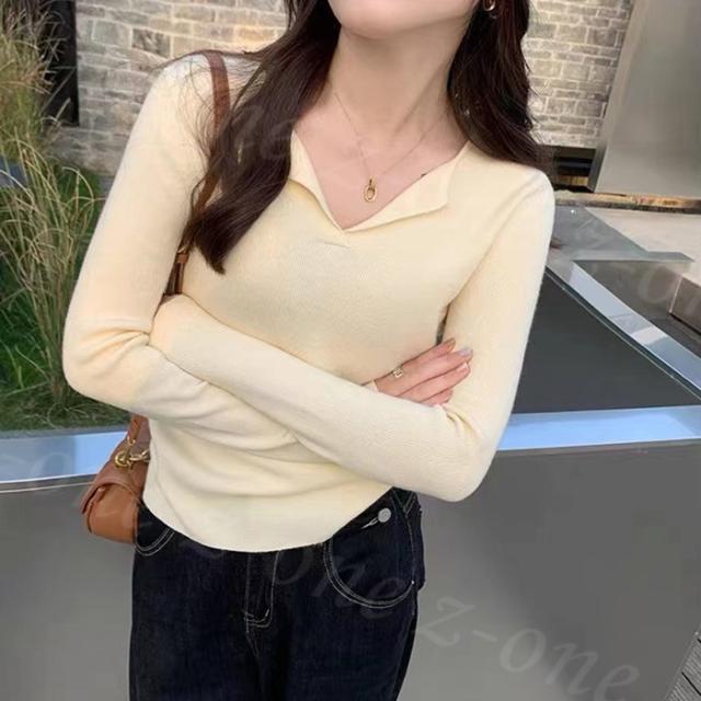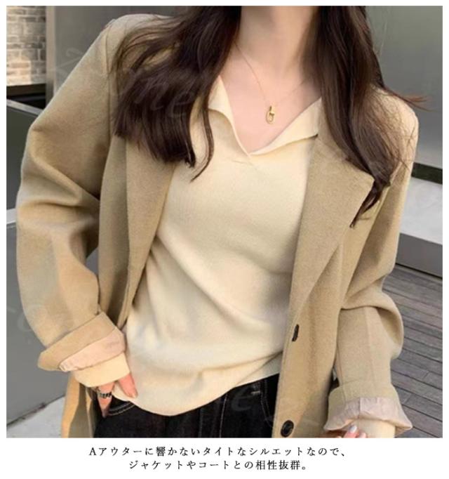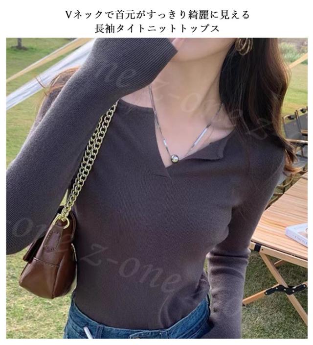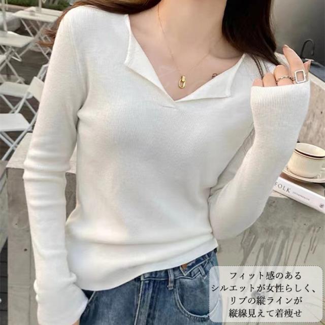 オープンネックスリム リブニットトップス 春新作 送料無料 レディース vネック ニットプルオーバー ニットセーター 大人 カジュアル ニットインナー 上品 着痩せ ホワイトデー 卒業式