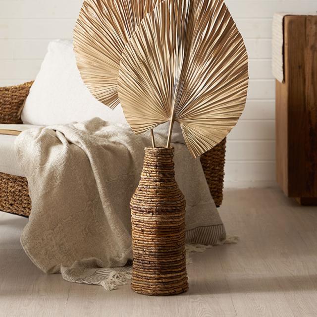 花瓶 おしゃれ フラワーベース ボトル アジアン 雑貨 インテリア アバカ 置物 オブジェ 卓上 ドライフラワー 造花 リゾート バナナリーフ バリ島 14186