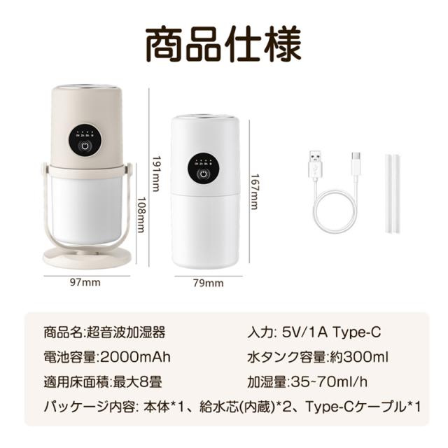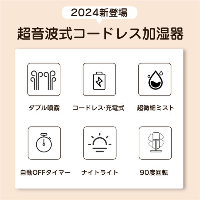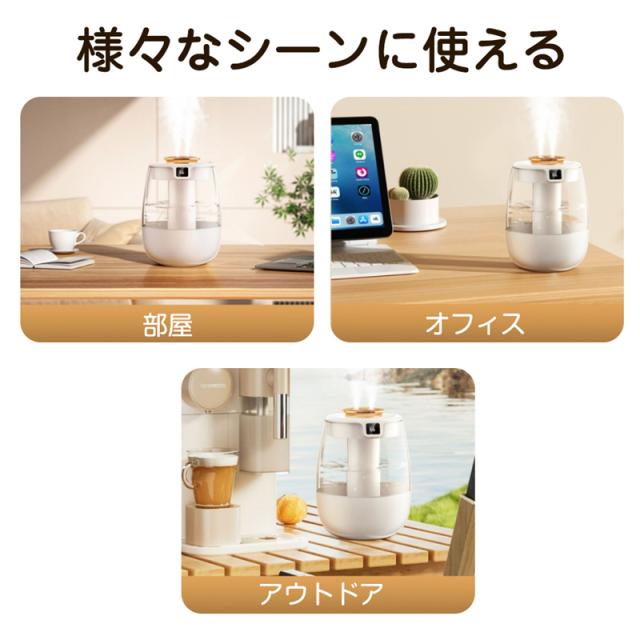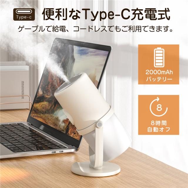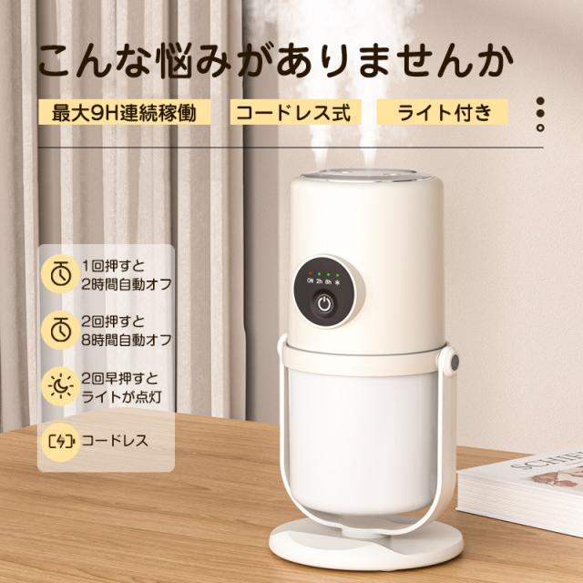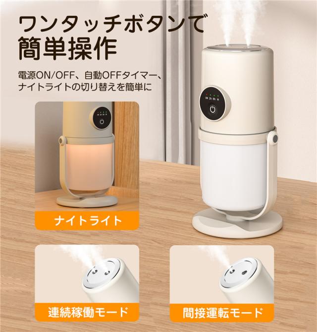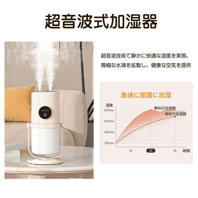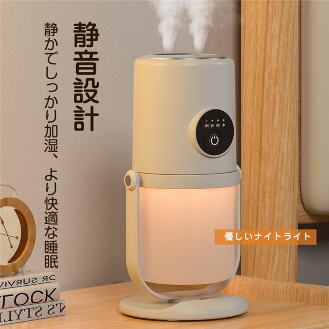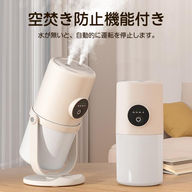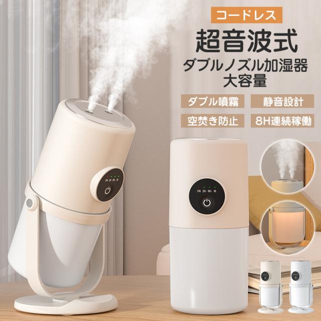 加湿器 スチーム式 卓上充電 コードレス 大容量 ダブル噴霧 空焚き防止 静音 ライト付 空気清浄機 乾燥 省エネ オフィス 部