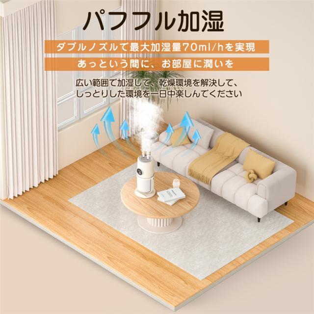 ダブルノズル:最大加湿量70ml/hを実現、急速に部屋に加湿することができる