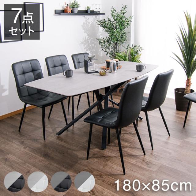 ダイニングセット 6人掛け 幅180cm セラミック テーブル チェア6脚付き ダイニングテーブル ダイニングチェア リビング ダイニング おしゃれ シャープ 鏡面 ガラステーブル 食卓 椅子 チェア(