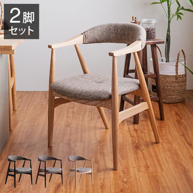 肘付きファブリックチェア 2脚セット