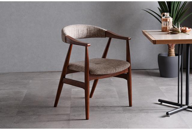 天然木とファブリックの組合せで丸みを施した繊細で美しいシルエットが特徴のチェア。