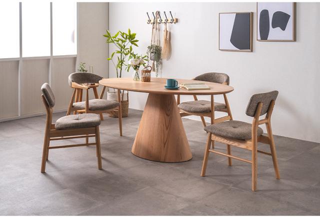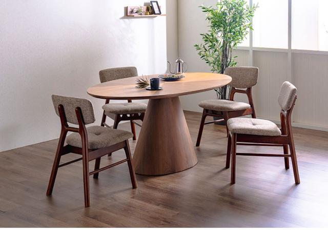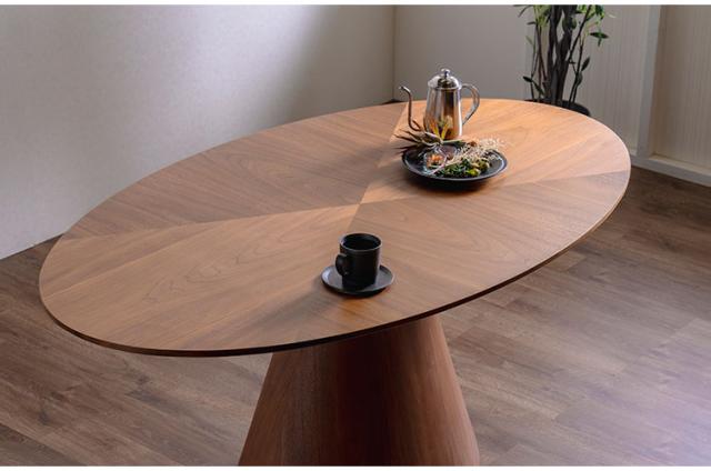突板素材で木本来の温かみのある風合いを感じるスタイリッシュな楕円形の天板。