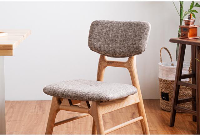 天然木の風合いを活かしたナチュラルで可愛らしい雰囲気のファブリックチェア。