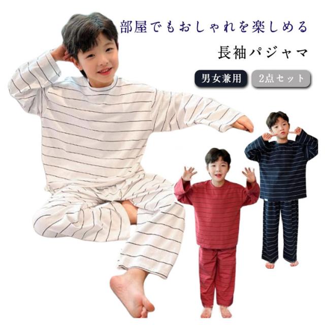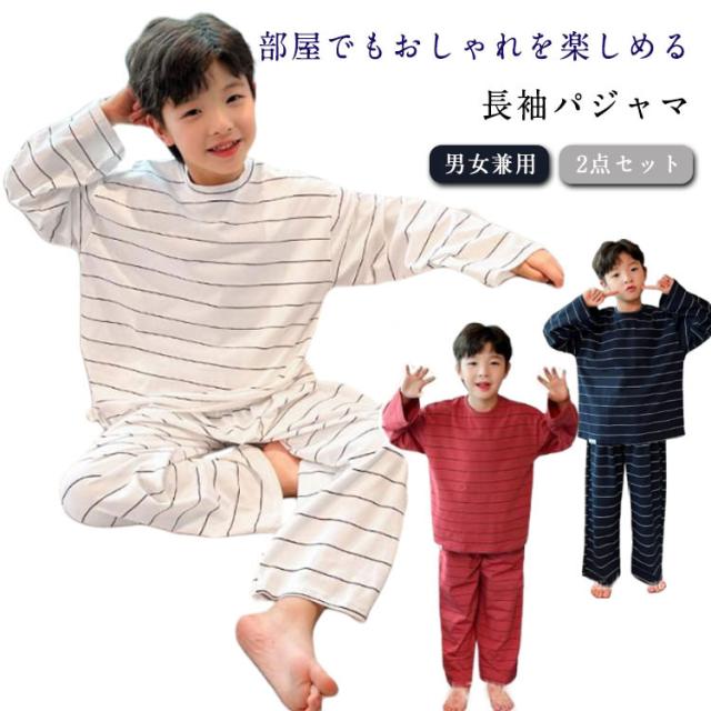 セットアップ 部屋着 ボーイズ 長袖パジャマ 子供服 キッズ 男の子 ボーダー ルームウェア 長袖ルームウェア 長パンツ ジュニア 2点セット パジャマ 春秋冬 上下セット 吸汗 女の子 お泊り トップス ボーイズ 入園準備 110 120 130 140 150 160 170