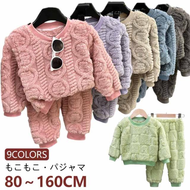 もこもこ ウエストゴム 男の子 冬 上下セット パジャマ 長袖 子供 パジャマ ルームウェア 部屋着 ゴム 女の子 100 90 80 160cm 110 150 130 袖口 140 足首 120 伸縮性 ストレッチ 厚手 無地 子ども 寝巻き 防寒 ふわふわ