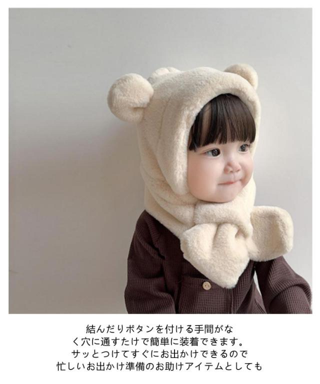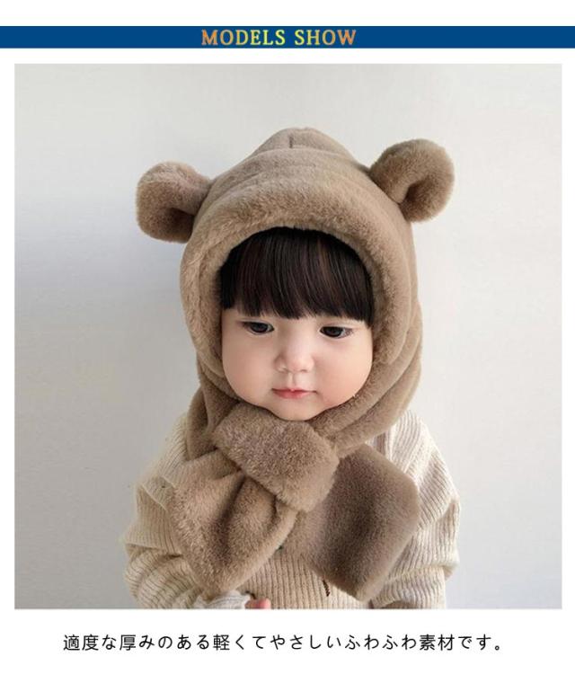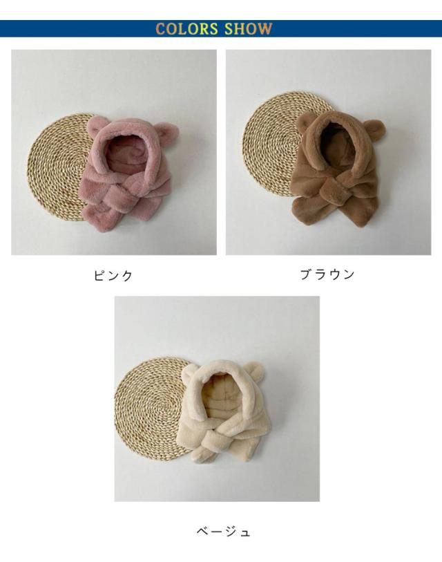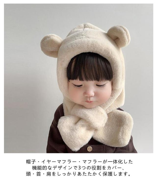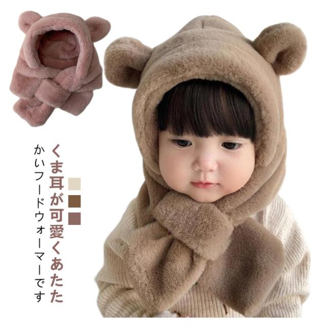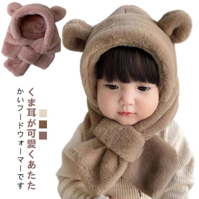 マフラー ふわふわ 男の子 冬 防寒 ベビー 1歳 フードウォーマー 6ヶ月 ファー 2歳 帽子 くま耳 赤ちゃん帽子 防寒 フード付き 耳あて イヤーマフ 一体型 ベビー 耳付き クマ 保育園 もこもこ 可愛い 女の子 クリスマス おしゃれ