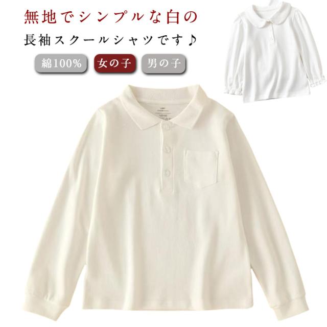 ポロシャツ 長袖 ブラウス ポケットあり スクール 襟付き スクールウエア 立衿 小学校 綿100% 制服 フォーマル ブラウス キッズ スクールポロシャツ 白 高校 学生服 女の子 丸衿 通園 男の子 こども 幼稚園 保育園 小学生 ブラウス 通学 通塾 受験 冠婚葬祭