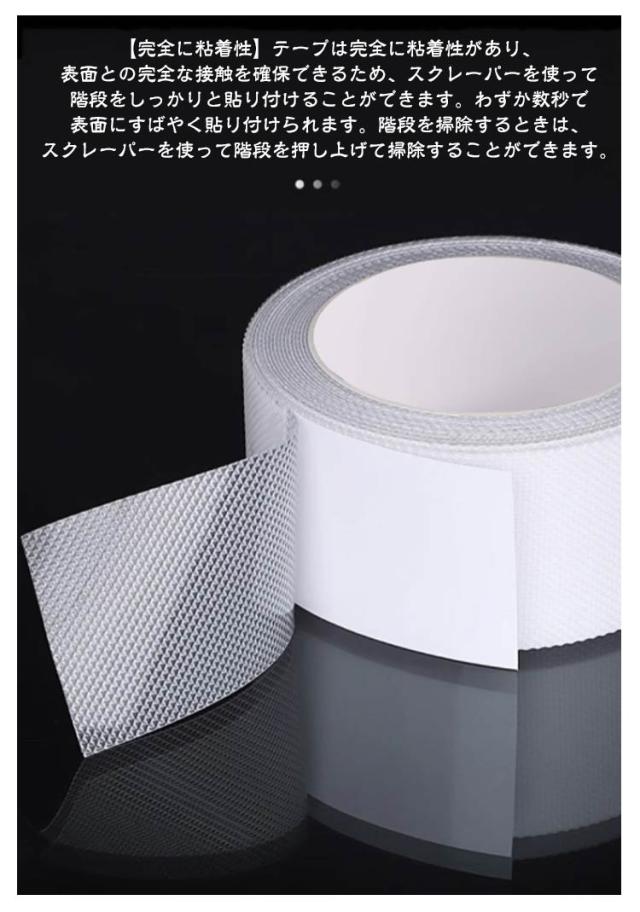 | 滑り止めテープはPEVA素材で作られて、グリップ力と耐久性が向上しています。 有害物質なしため、子供、高齢者を安全に保ちます。 【完全に粘着性】テープは完全に粘着性があり、表面との完全な接触を確保できるため、スクレーパーを使って階段をしっかりと貼り付けることができます。わずか数秒で表面にすばやく貼り付けられます。階段を掃除するときは、スクレーパーを使って階段を押し上げて掃除することができます。 【簡単な作業】タイル、大理石、その他の滑らかな素材および気泡や隙間がない素材に適用です。防水性があり、シャワーや浴槽のような濡れた環境にも置くことができます。 【広い用途】駐車場、ホテル、病院、学校、駅、オフィスビル、階段、トイレ、浴室、などには大活躍。滑りやすくなった階段・フロアなどのスリップ事故の防止にお役立てください。 | |