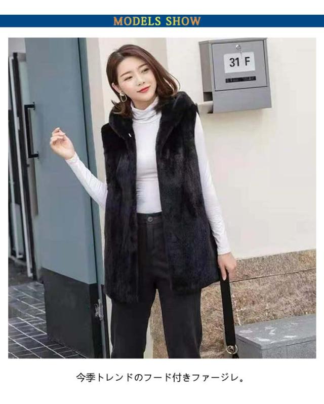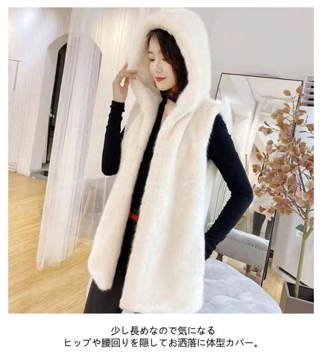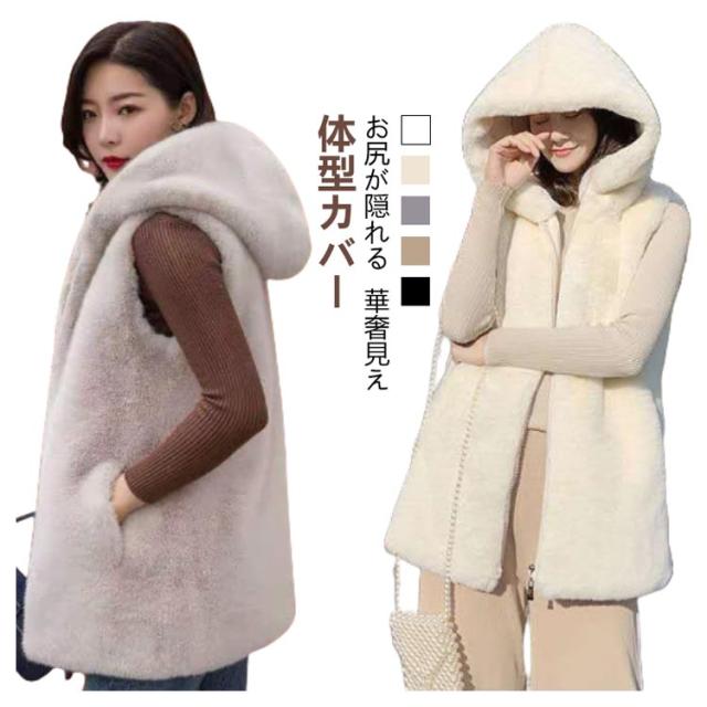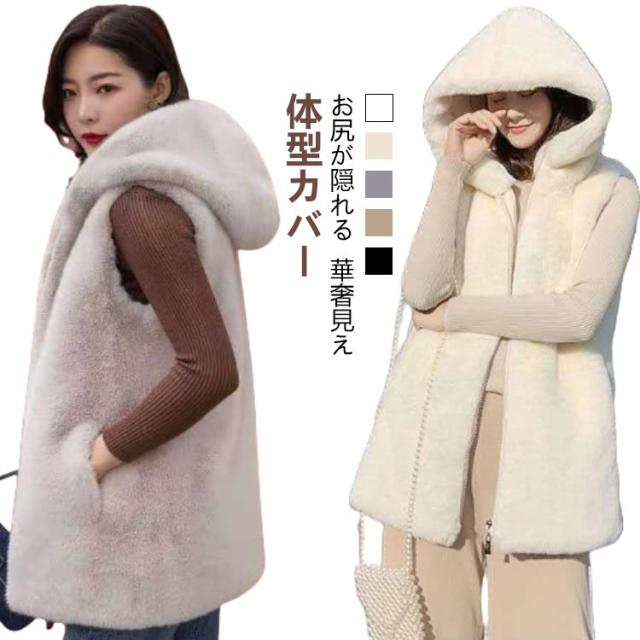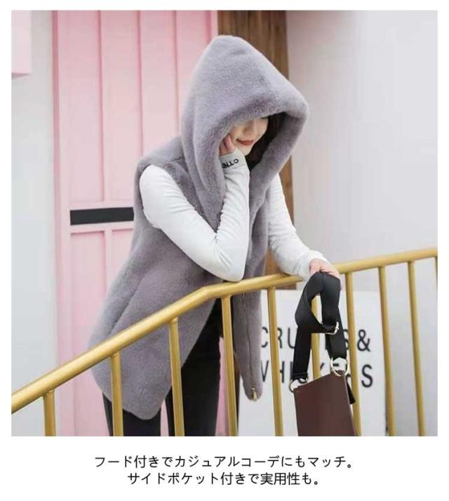 ジレ レディース フード付き フェイクファー ファー ベスト ファー カジュアル ファーベスト エコファー コート ふわふわ 暖かい 羽織 アウター 大人可愛い 着痩せ 秋冬 コーデ 黒 白 ベージュ グレー もこもこ はおり