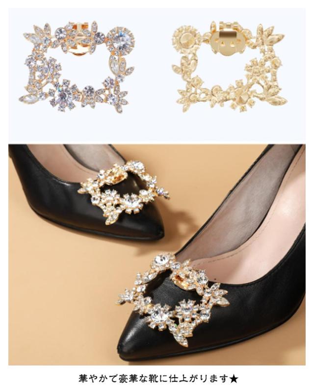 | 【シューズクリップ】【キラキラ】【2個1組】 付けるだけでいつものパンプスが大変身! 足元を輝かせ、お洒落上級者さんにお勧めです。 シンプルなパンプスにこのアクセを付けるだけで、 華やかで豪華な靴に仕上がります★ | |