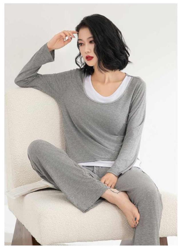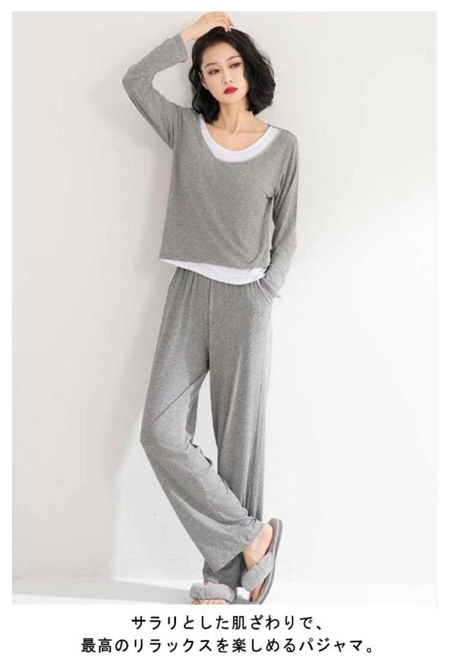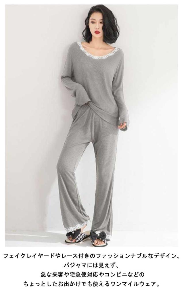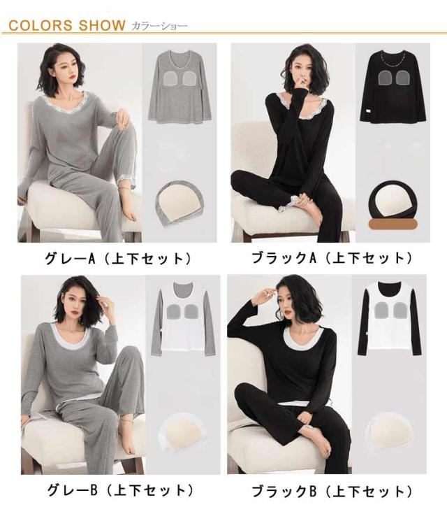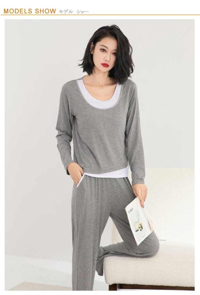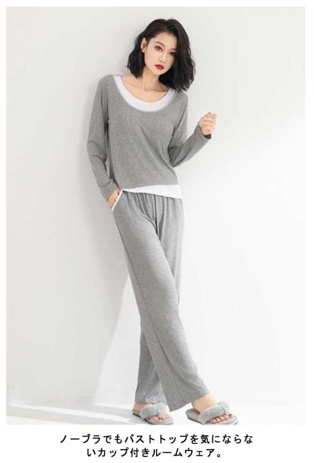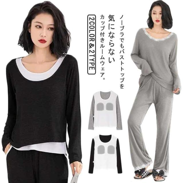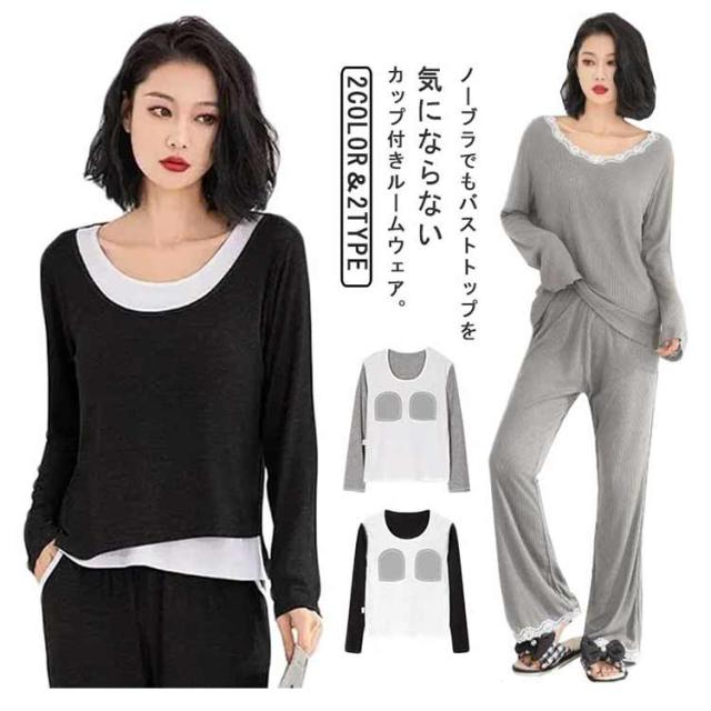カップ付き ナイトウェア M-2XL M-2XL ルームウェア パジャマ パジャマ 2点セット パッド 部屋着 出産 上下セット 重ね着風 おしゃれ 入院 レース付き 修学旅行 部屋着 寝巻き 秋 春 夏 ゆるりら