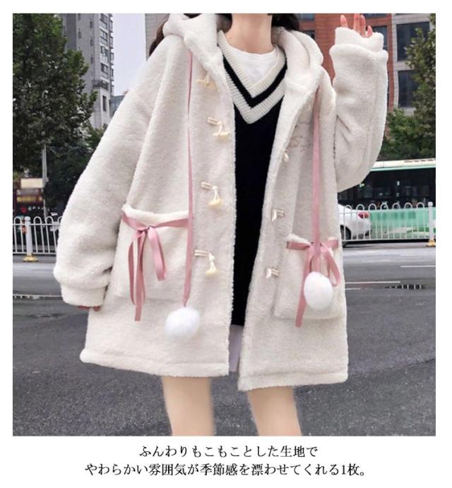 学生 スクールコート ボアコート ボアブルゾン レディース ダッフル ボアブルゾン フード付き 制服 女子 秋冬 コート 学生コート ボアブルゾン ボアジャケット アウター 耳 ダッフルコート フリースジャケット もこもこ 防寒コート 暖かい