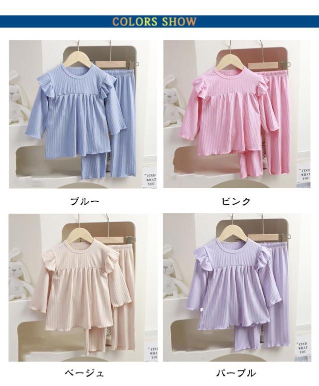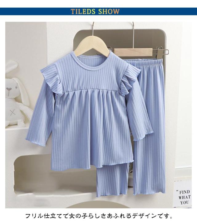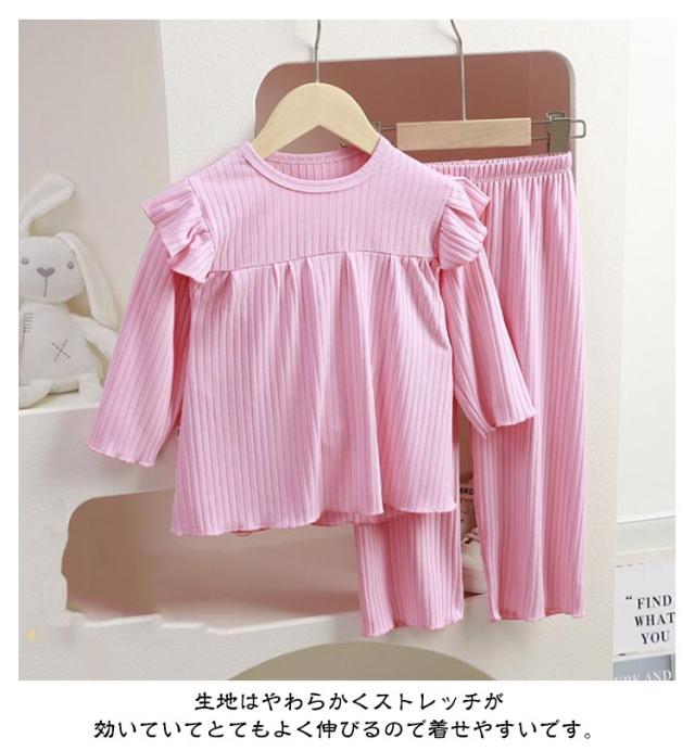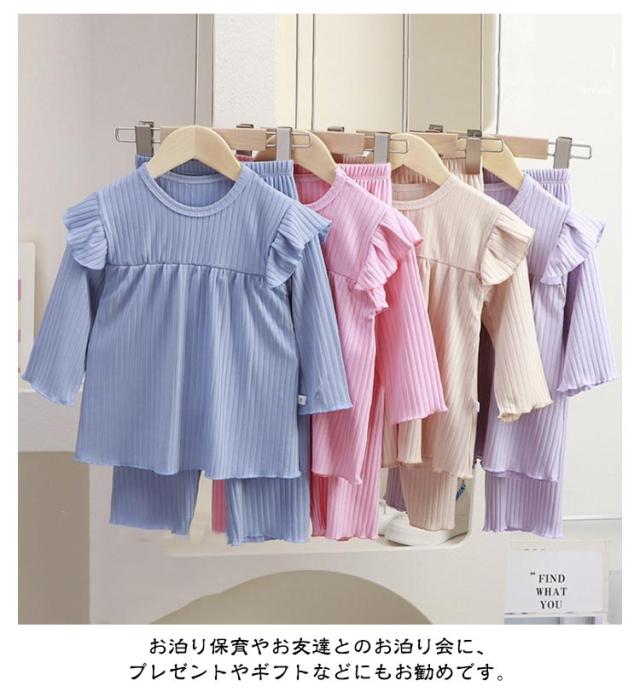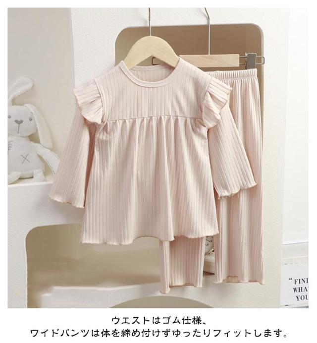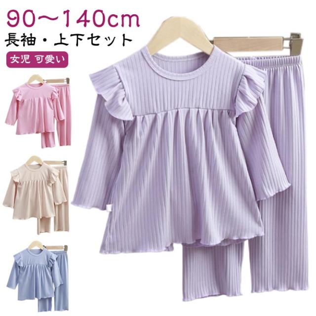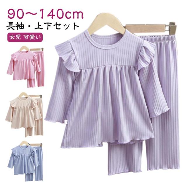 可愛い 女の子 長袖 子供服 長ズボン ナイトウェア キッズ ルームウェア フリル セットアップ 薄手 パジャマ ベビー 子ども服 こども キッズ 部屋着 女児 子供 シンプル 寝間着 寝巻き 90 100 110 120 130