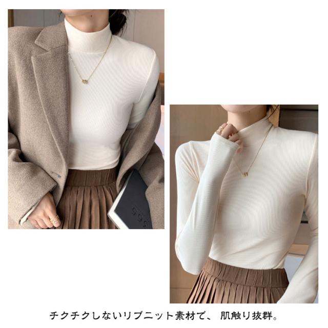カットソー 春 タートルネック レディース リブ ニット ハイネック 長袖 きれいめ ハイネック ハーフネック フォーマル 秋冬 インナー ニットトップス プルオーバー tシャツ リブニット 無地 オフィス 通勤 韓国 ニットソー 肌着