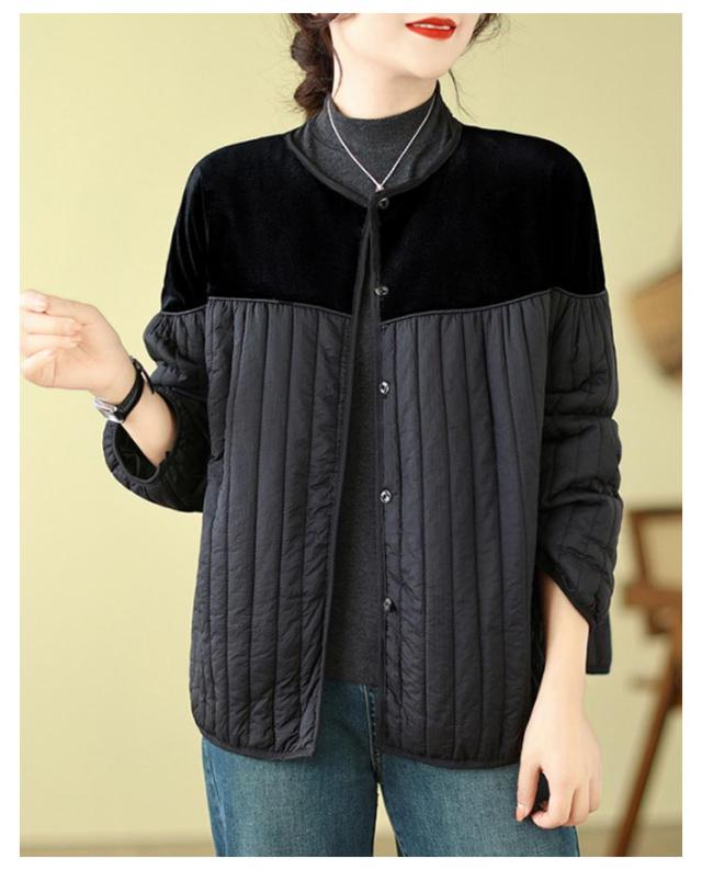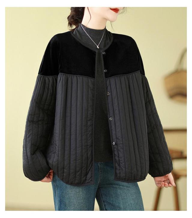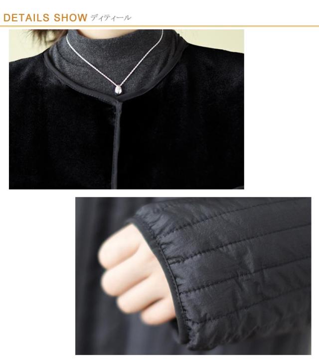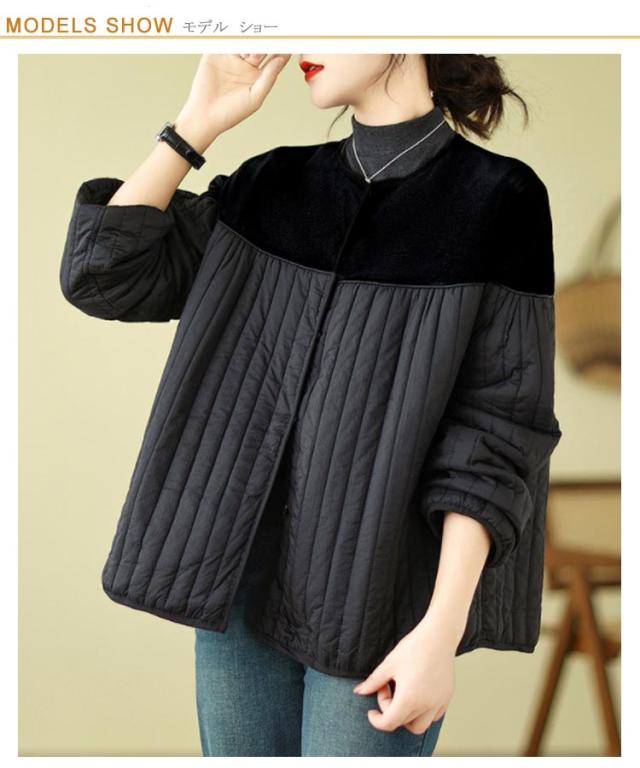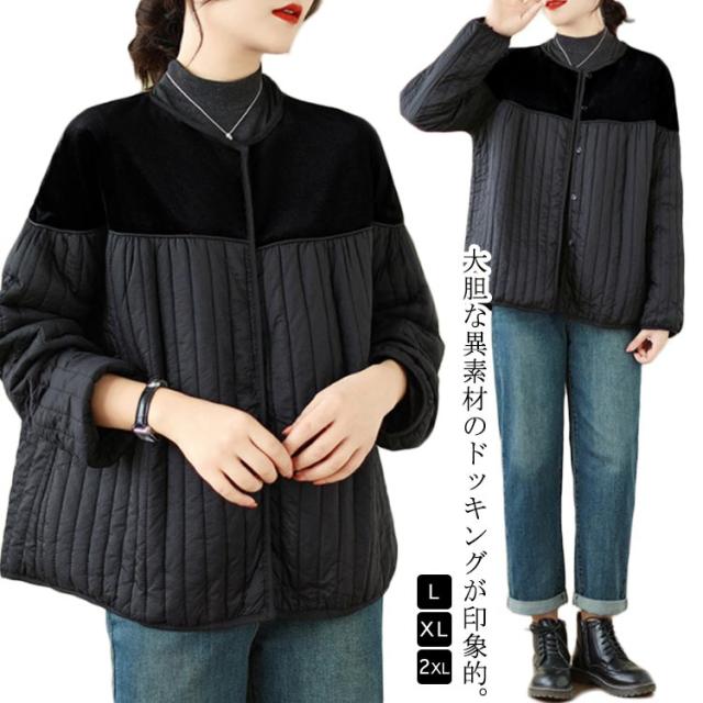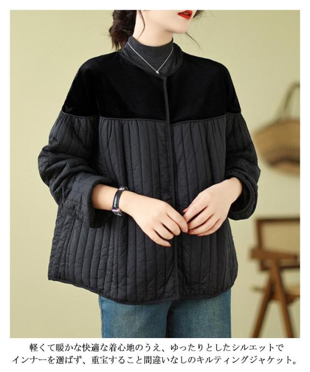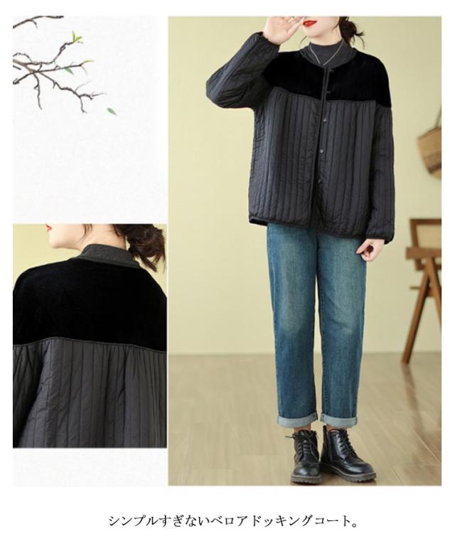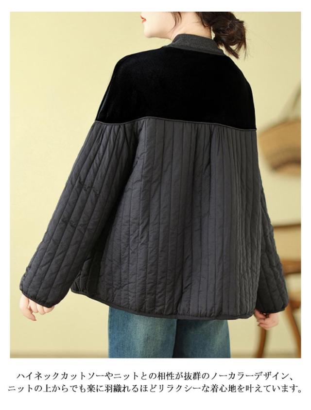 キルティングコート 上品 ジャケット キルト ベロアドッキング ノーカラー 中綿 保温 アウター レディース ビッグシルエット 大きいサイズ ドッキング 暖か ショート丈 中綿コート 秋冬 上品 お洒落