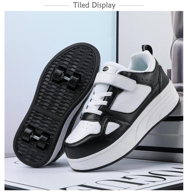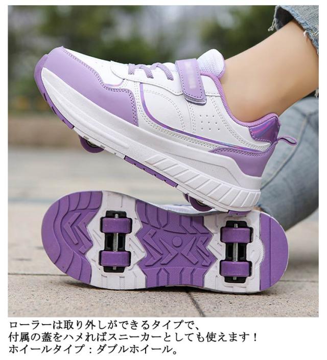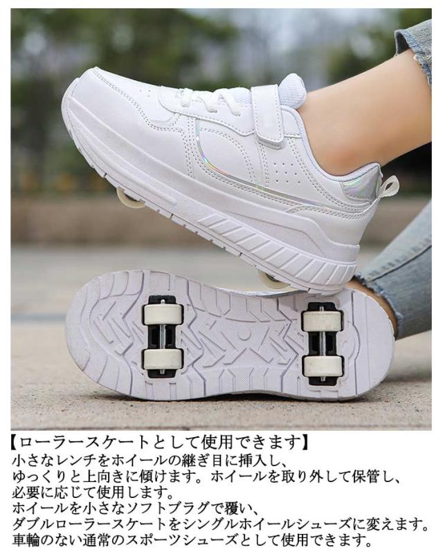 | 四輪式!お出かけや旅行などにピッタリな大人気ののローラーシューズです。ローラーは取り外しができるタイプで、付属の蓋をハメればスニーカーとしても使えます!ホイールタイプ:ダブルホイール。 【ローラースケートとして使用できます】小さなレンチをホイールの継ぎ目に挿入し、ゆっくりと上向きに傾けます。ホイールを取り外して保管し、必要に応じて使用します。 ホイールを小さなソフトブラグで覆い、ダブルローラースケートをシングルホイールシューズに変えます。車輪のない通常のスポーツシューズとして使用できます。 | |