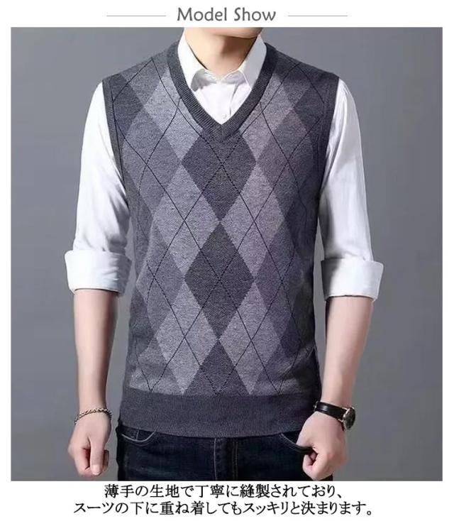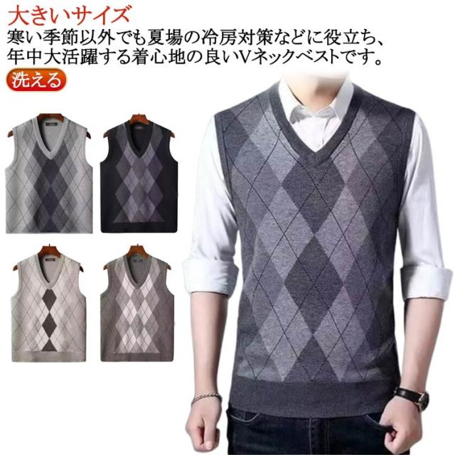 洗える メンズ セーター Vネック 無地 ニット ビジネス アーガイル柄 チョッキ 大きいサイズ 冬 フォーマル ニット シンプル ニットベスト スクールニット プルオーバー カジュアル 秋 春 ウールライク ビジネスベスト ニット 男性 紳士 ジレ 防寒 仕事 オフィス