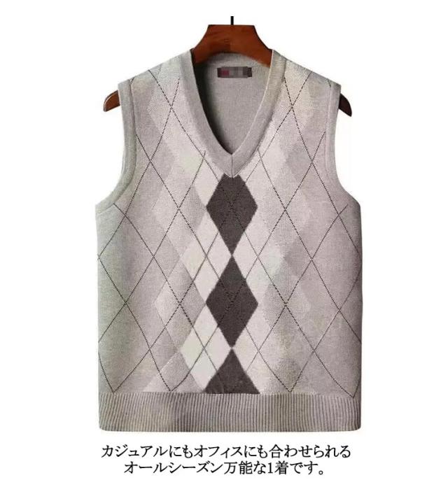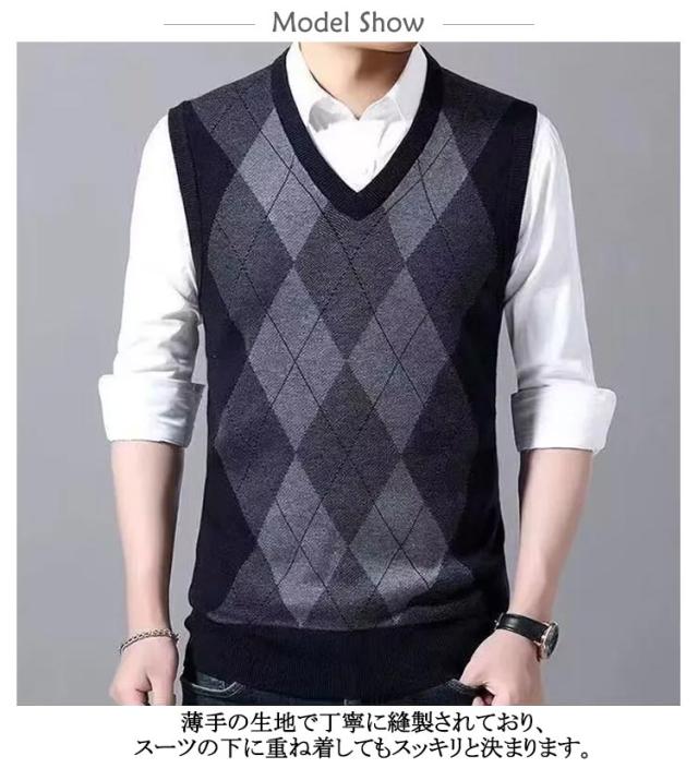 アーガイル柄 メンズ ベスト ニット 洗える ウールライク Vネック スクールニット ニットベスト カジュアル フォーマル セーター ニット ニット 男性 プルオーバー シンプル ビジネスベスト 春 秋 冬 チョッキ 大きいサイズ 紳士 ジレ 防寒 仕事 オフィス