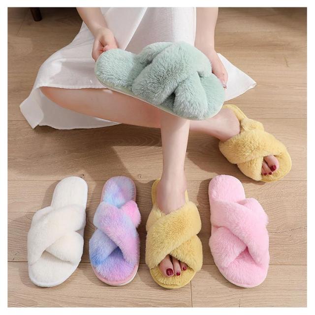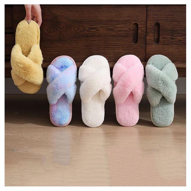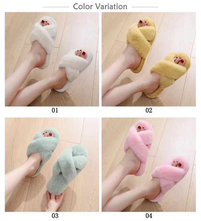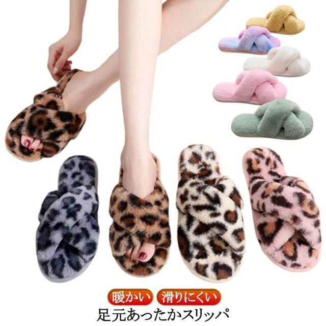 あったか エコファー 冬 秋 おしゃれ 暖かい スリッパ ふわふわ レディース フェイクファー かわいい ルームシューズ 室内履き くすみカラー 滑りにくい スリッパ ルームシューズ クロスデザイン スリッパ