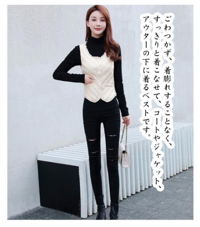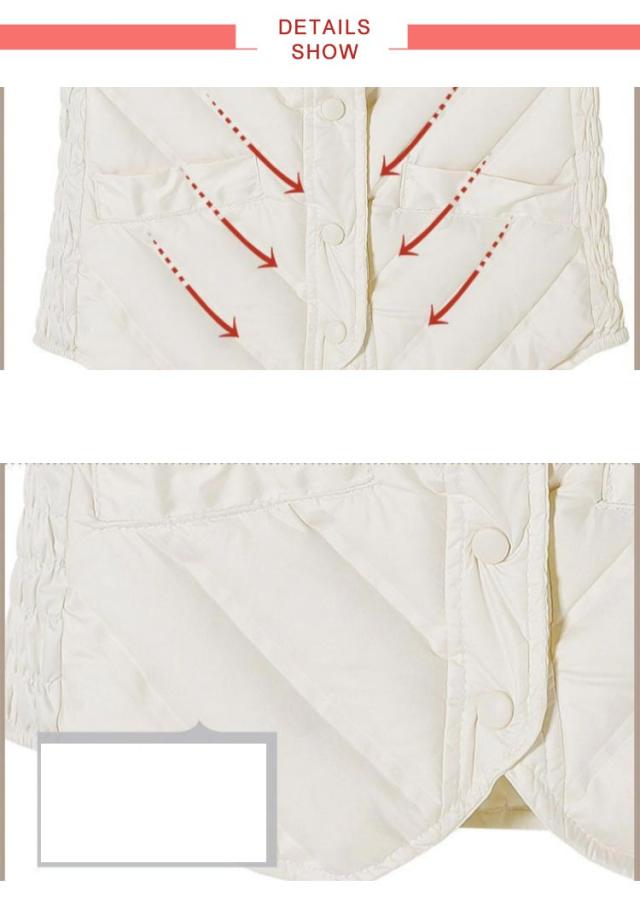 | 脇シャーリングゴムで体に優しくフィットし、女性らしい細身シルエットが実現できるベスト ごわつかず、着膨れすることなく、すっきりと着こなせて、コートやジャケット、アウターの下に着るベストです。 軽くて柔らかい着心地、シンプルなデザインで様々なファッションに合わせることが出来ます。 上質素材で抜群に保温性が高く暖かい、寒さの厳しい時期にはコートのインナーとして幅広く活躍してくれます、着ていることを忘れるくらい驚きの軽さ。 ラウンドネックにさりげないフリフリが大人可愛い♪さっと羽織られて、アウターにもインナーにも大活躍なアイテムです! | |