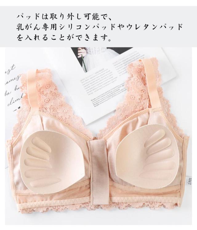 前開き 乳がん専用 術後 ブラジャー 乳癌 レース レディース 前ジッパー ノンワイヤーブラ ブラ 入院 下着 インナー 乳ガン 大きいサイズ ストレッチ性 可愛い きれいめ 前開き 取外し可能パッド 通気性 お洒落