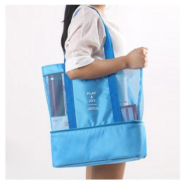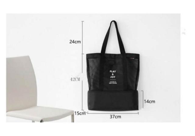 | 乾湿分離!温泉、プールや海へ水遊びに最適なメッシュバッグ メイン収納部は乾湿2ルーム分けられています。濡れたものやビーチサンダルを入れたりできて便利です。 日常生活の洗顔用品、バス用品がゆっくり収納できます。服、靴、水筒、傘、おやつでも全部入れる大容量!ビーチや公園のお砂遊びのおもちゃ入れに大きくてたっぷり入ります。 メッシュ素材のバッグは、通気性が非常によく、濡れた衣類を収納しても蒸れにくくなっております。折り畳むこともでき、片付けも簡単です。ビーチやプールでは水着やタオル、シュノーケリングのマスクやフィンなど濡れた物も入れられ、使用後はジャブジャブと丸洗いもOK! | |