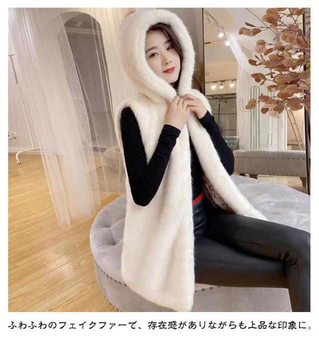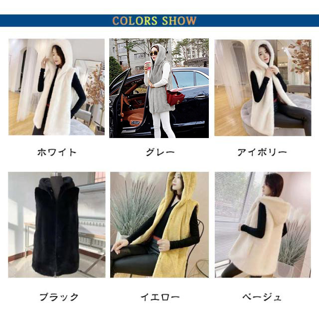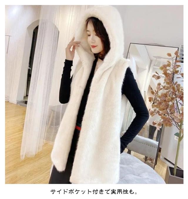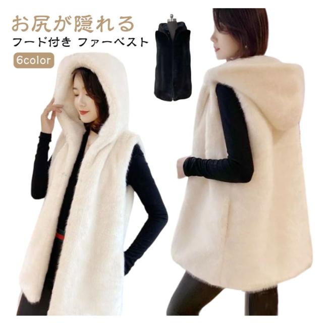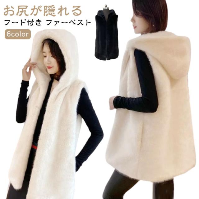ファー ベスト フード付き ジレ ふわふわ フェイクファーコート カジュアル ロング ファーベスト レディース エコファー 暖かい 羽織 アウター 大人可愛い 着痩せ 秋冬 コーデ 黒 白 ベージュ グレー もこもこ はおり 防寒 秋冬