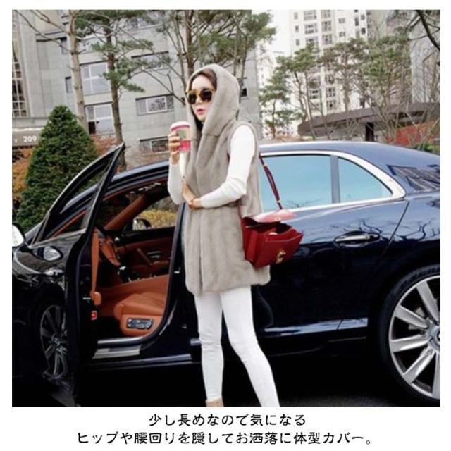 | 【お尻が隠れる】【フード付き】【ファーベスト】【6color】 今季トレンドのフード付きファージレ。 少し長めなので気になるヒップや腰回りを隠してお洒落に体型カバー。 フード付きでカジュアルコーデにもマッチ。 サイドポケット付きで実用性も。 ふわふわのフェイクファーで、存在感がありながらも上品な印象に。 | |