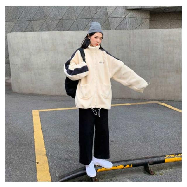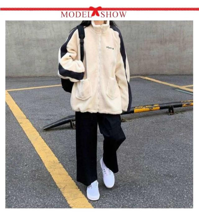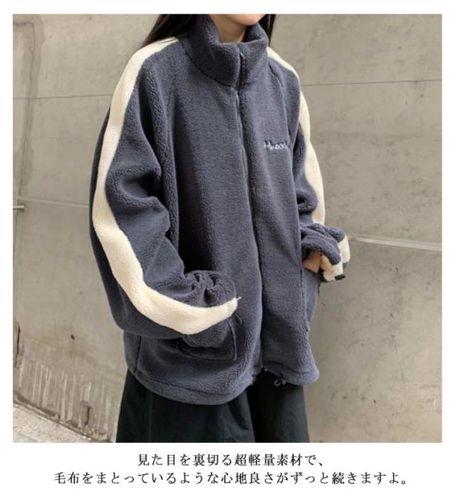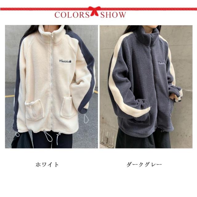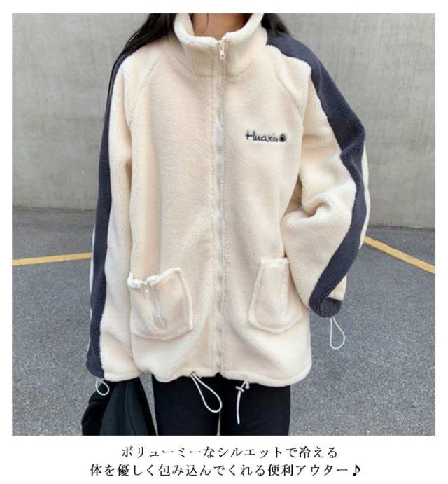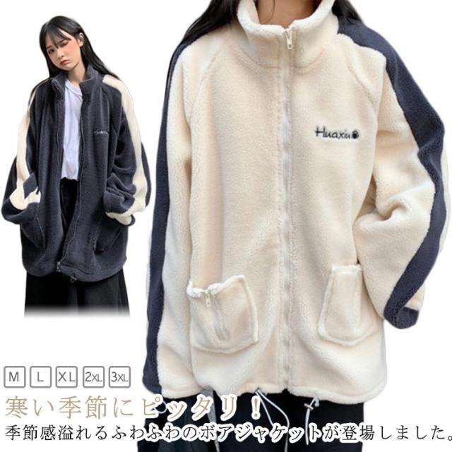 ジャケット ボアジャケット 韓国風 ボアブルゾン ボアジャンパー スタンドカラー 韓国風 ジャンバー レディース アウター 防寒 カジュアル 冬 ゆったり可愛い もこもこ