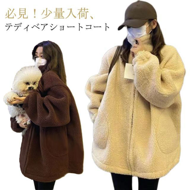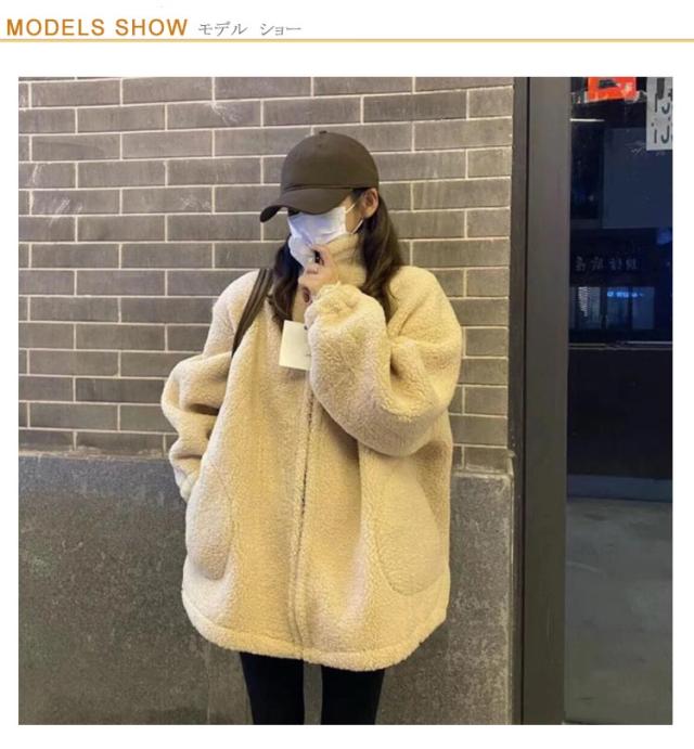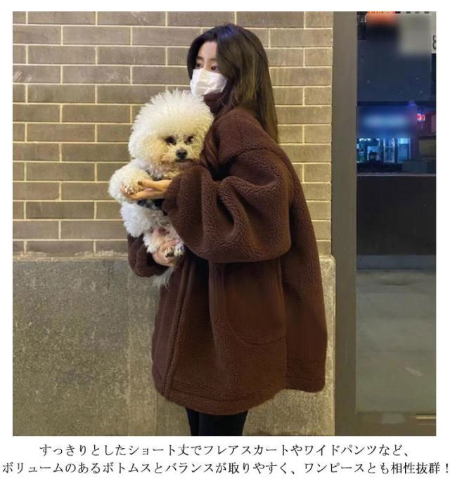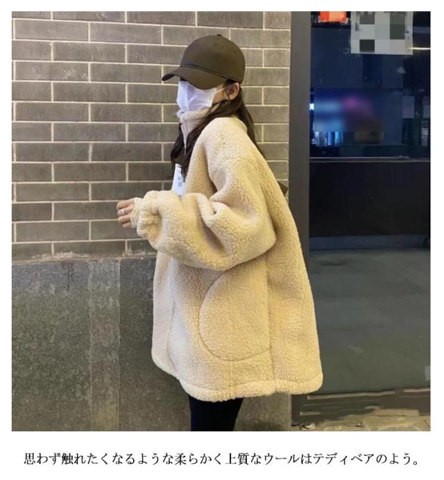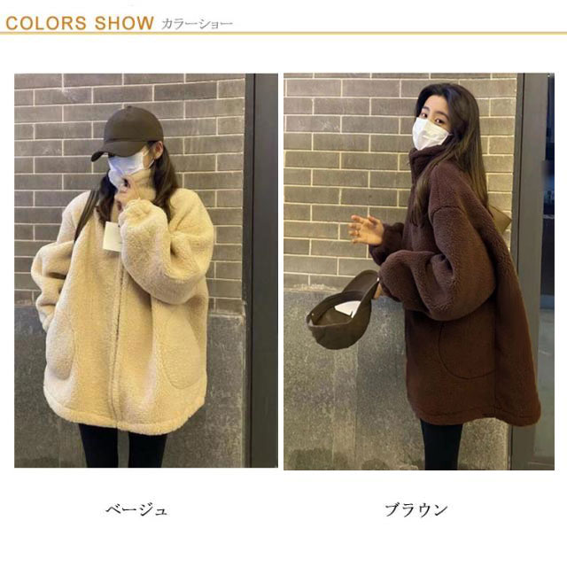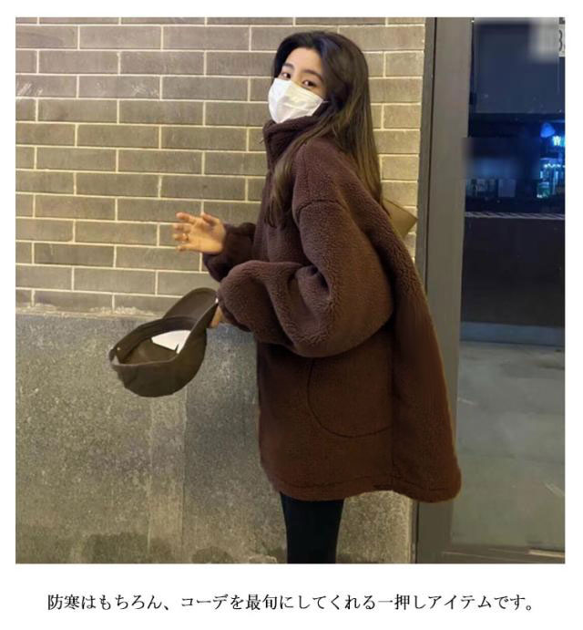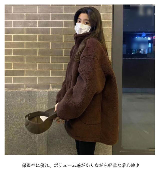 ボアブルゾン 上着 大きいサイズ レディース もこもこ ボアコート 秋冬 スタンドカラー 立ち襟 ボアジャケット 暖か ボアブルゾン 冬服 オーバーサイズ 防寒 ミドル丈 ヒップが隠れる ふわふわ