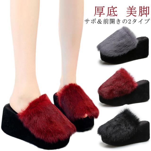 スリッパ ファーサンダル ラビットファー フラットサンダル ファーサンダル あったか ウエッジヒール もこもこ 美脚 ふわふわ ミュール サンダル レディーズ 歩きやすい 美脚 おしゃれ シューズ シューズ カジュアル お出かけ 春 秋 冬