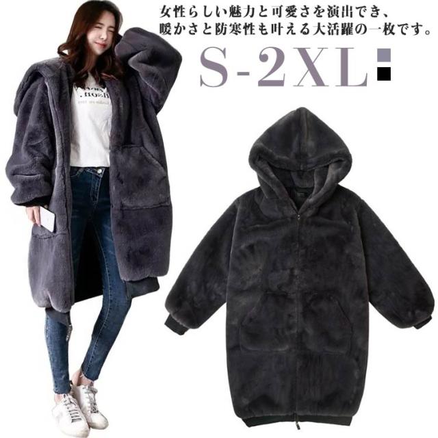 ロングファーコート フェイクファー 毛皮コート ジャケット ロングファーコート 厚手 カジュアル 防寒 アウター ロング丈 ボリュームファーコート ブルゾン レディース ムートンコート フード付き おしゃれ 暖かい 秋冬 送料無料 ゆったり