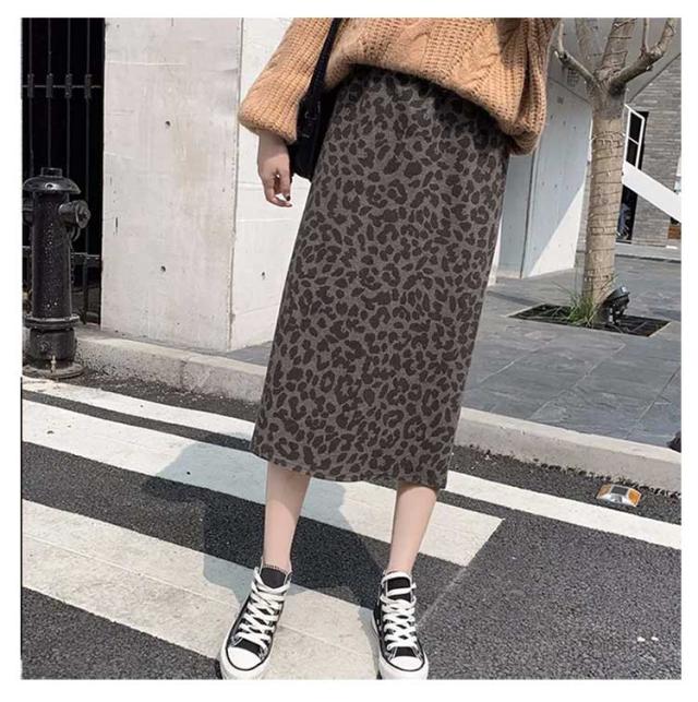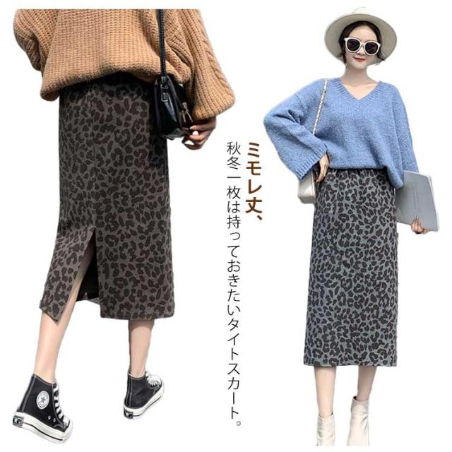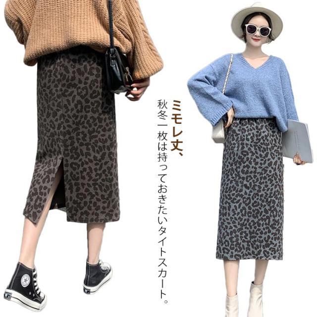 レディース ミモレ丈 タイトスカート ハイウェスト スカート レオパード柄 ロング ストレートスカート おしゃれ ラシャタッチ ヒョウ柄 バックスリット 着痩せ 冬 カジュアル ひざ下 ラシャタッチ S M L