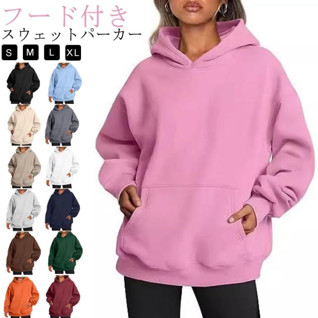 スウェット 秋冬 レディース 体型カバー オーバーサイズ フード付き パーカー パーカー トップス トレーナー 大きいサイズ ゆったり 長袖 パーカー 春秋 スウェットフードパーカー スエット パーカー