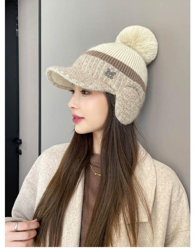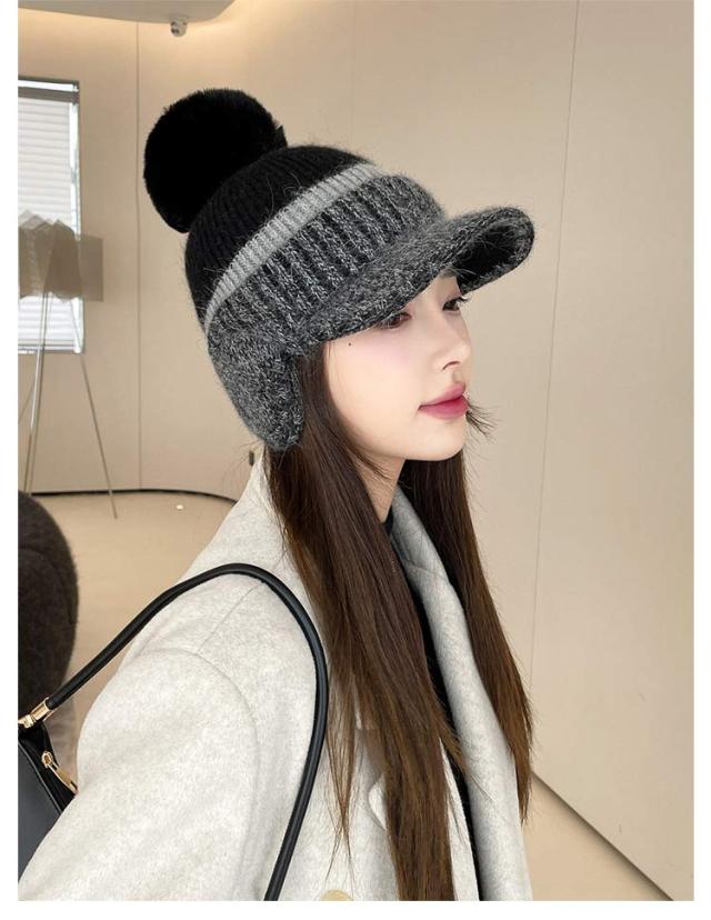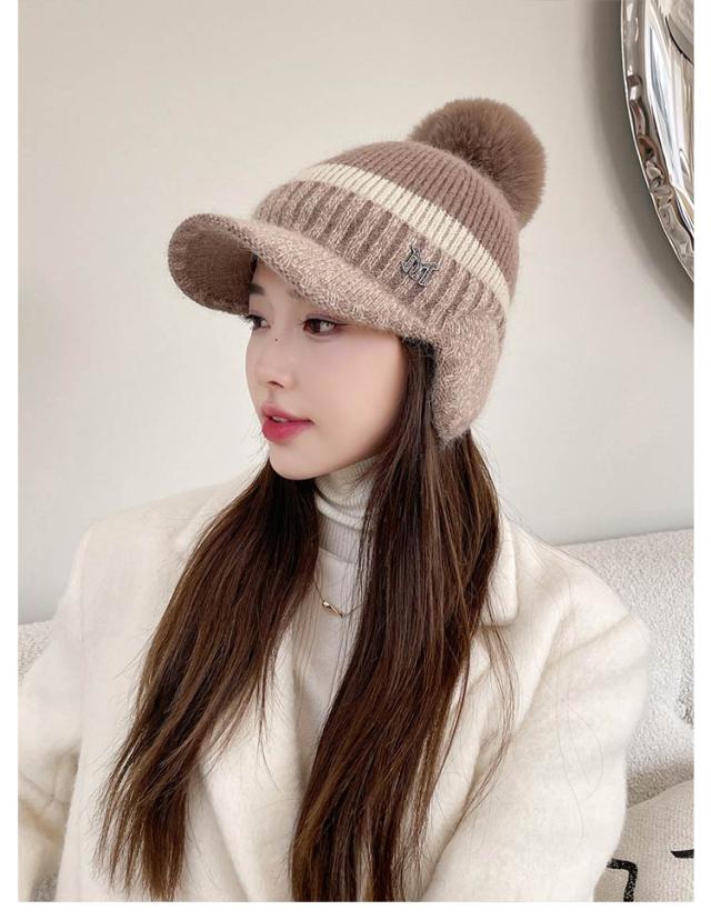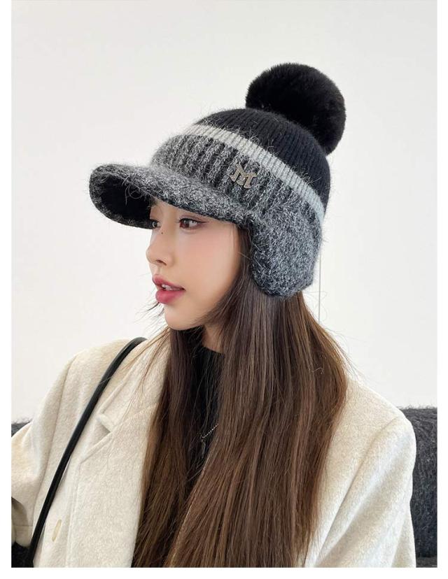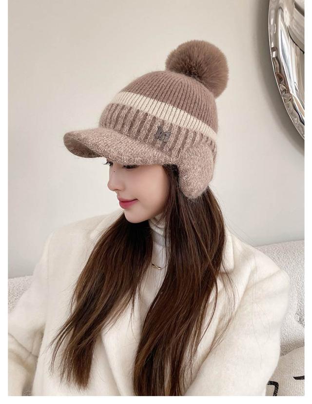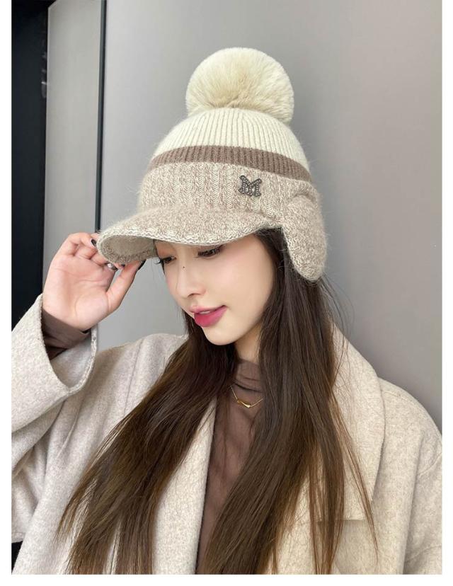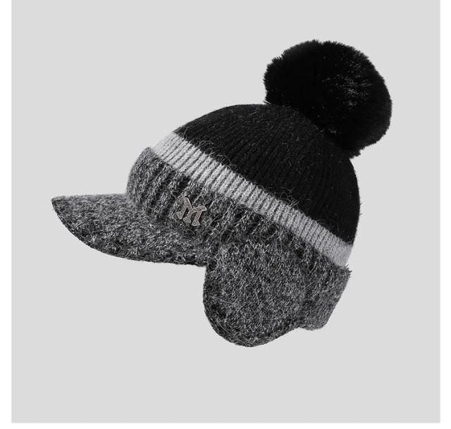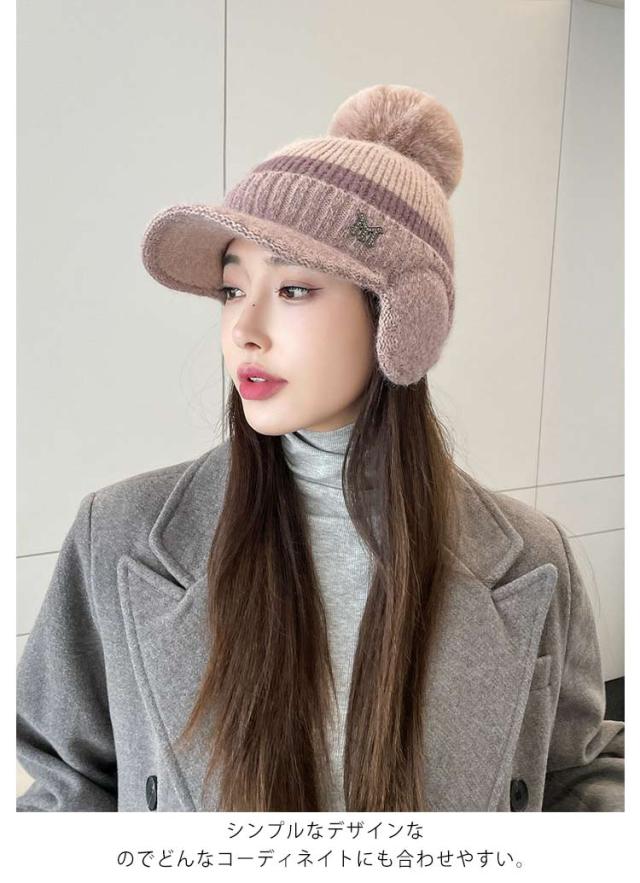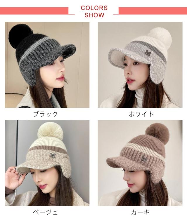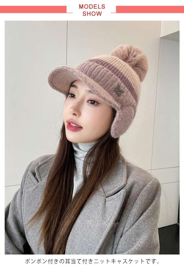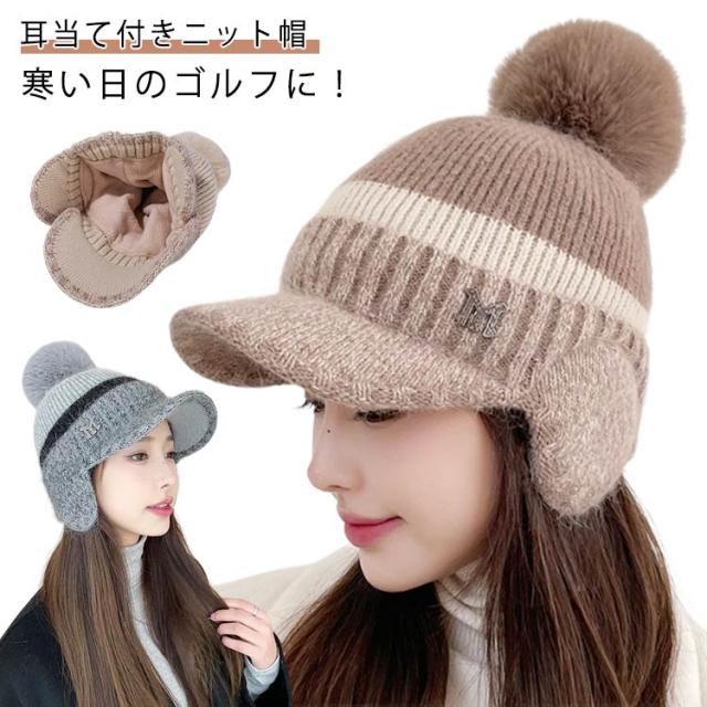 耳当て付きニット帽 耳当て ゴルフ ニット帽 アウトドア 通勤 帽子 厚手 暖かい つば付き スポーツ カジュアル レディース 裏起毛 配色 おしゃれ 可愛い あったかグッズ プレゼント 耳当て付きニット帽 通学 キャンプ ポンポン付き 旅行 秋