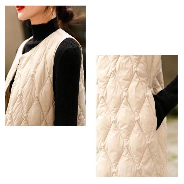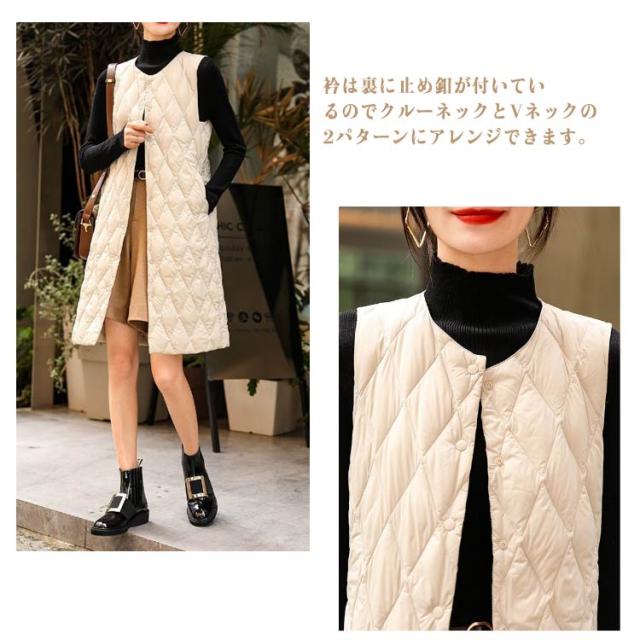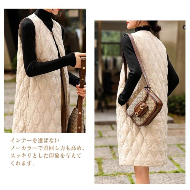 丈長め アウター ロングベスト 暖かい キルティングベスト ミセスファッション ライトダウン 軽い 襟なし 体型カバー ロングベスト インナーダウン キルティング キルトベスト 秋冬 あたっか 薄手 軽量 中綿ベスト 保温