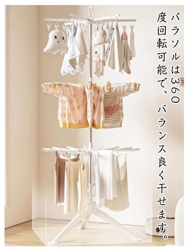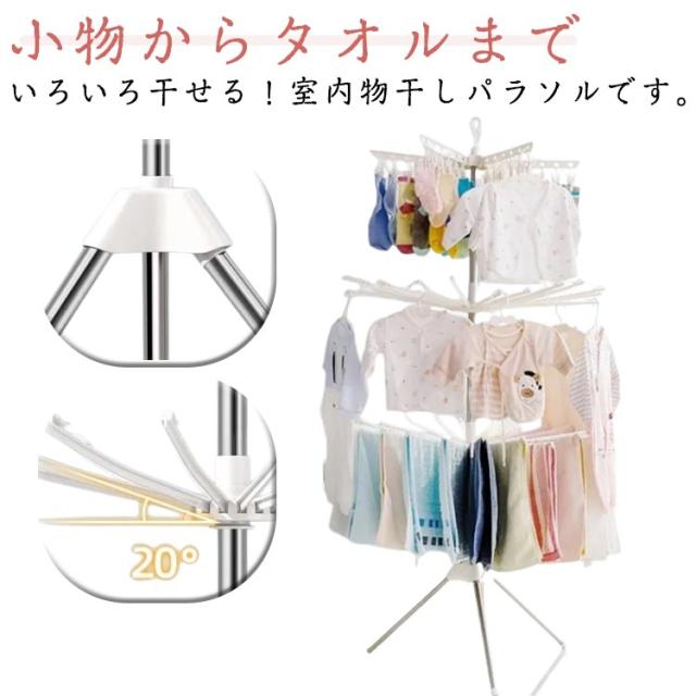 ピンチハンガー 室内干し 衣類乾燥ラック 洗濯物干し 物干しスタンド お洒落 3段 ベランダ用 折りたたみ パラソルハンガー 大容量 省スペース 室内・屋外兼用 室内干し 滑り止め 洋服 タオル干し 組み立て簡単