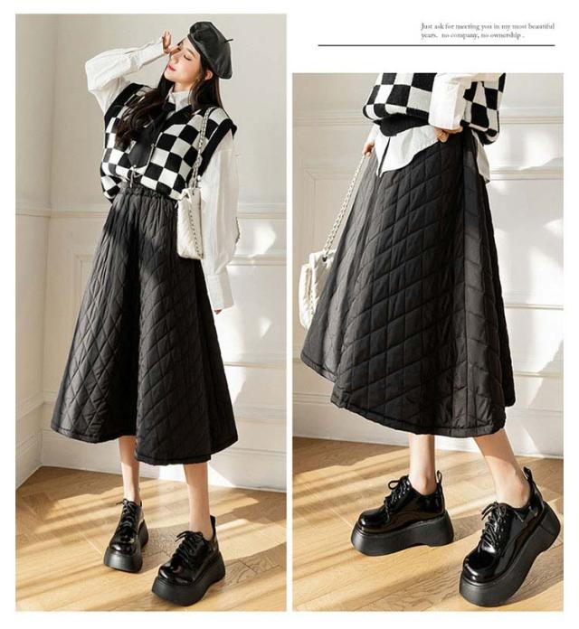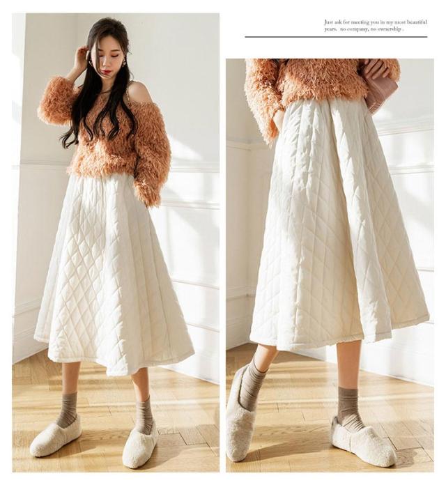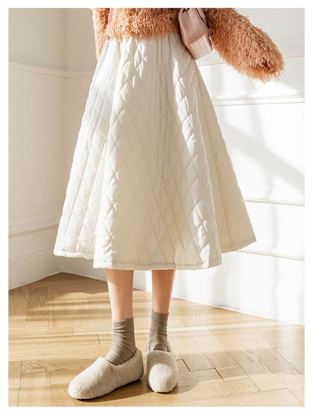 | 全4色、寒風を防ぎ、ふんわり厚みのある中綿スカート。 ウエスト後ろ部分はゴム入りでソフトにフィットしシルエットがキレイ。 Aラインが大人の女性らしい雰囲気に魅せてくれます。 キルティングは暖かい、柔らかな雰囲気、ハイウエストデザインだからトップスインするとすっきりとした印象に シャツやニットなどのシンプルトップスと合わせるだけで大人っぽくてフェミニンな一枚。 | |