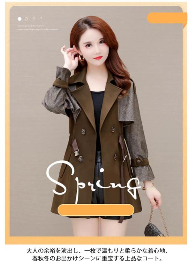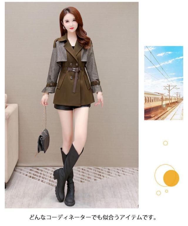 秋 コート トレンチコート ショート丈 スプリングコート レディース 冬 大きいサイズ シャーリング フォーマル ビジネス ライトアウター 切り替え 春アウター 裏地付き シンプル 配色 M L XL 2XL 3XL