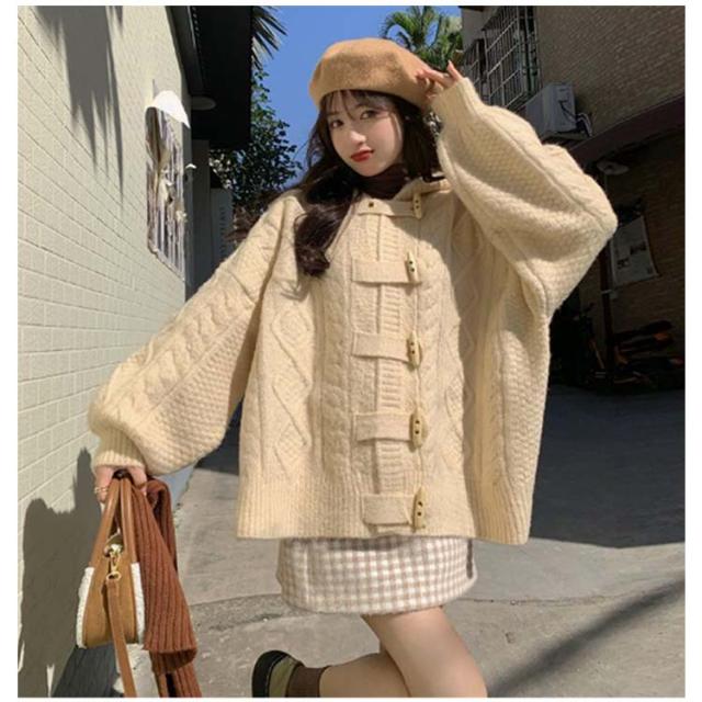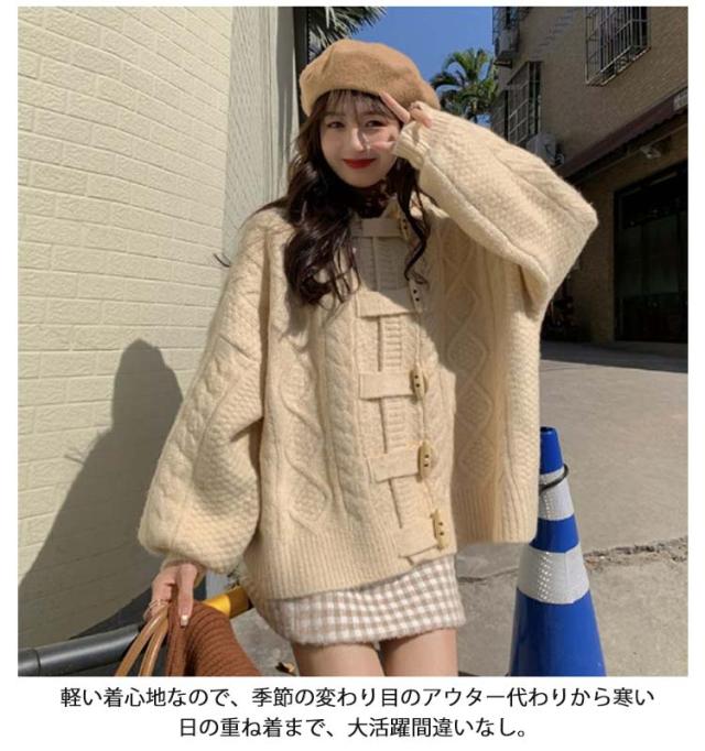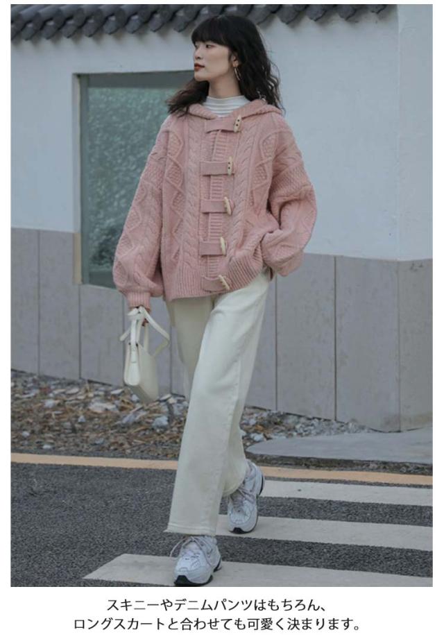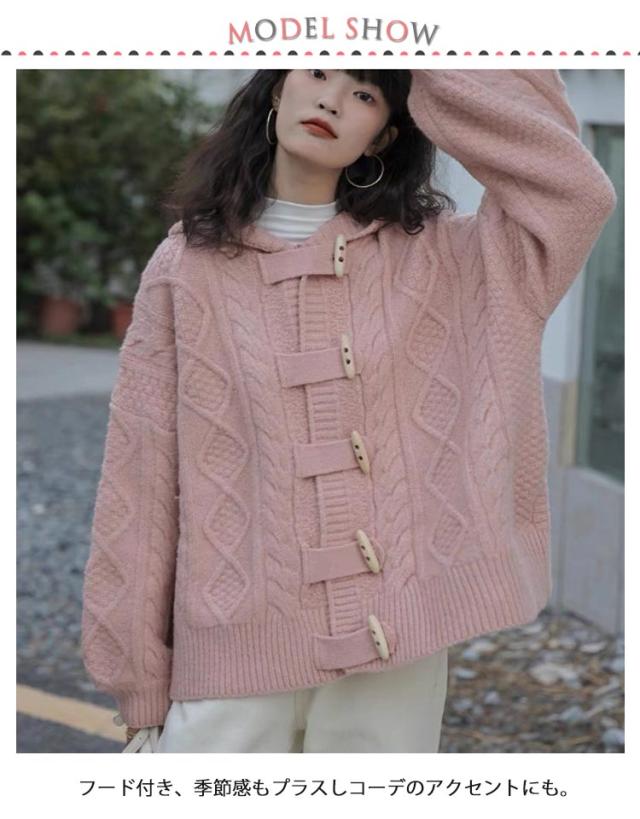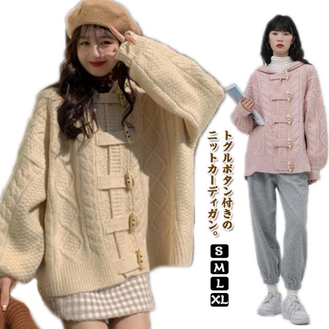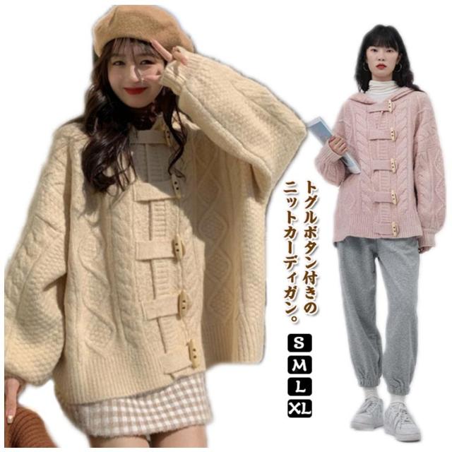 ニットトップス S カーディガン ニットジャケット トグルボタン フード付き レディース 長袖 ニットカーディガン トグルボタン 秋 冬 かわいい 春 M L