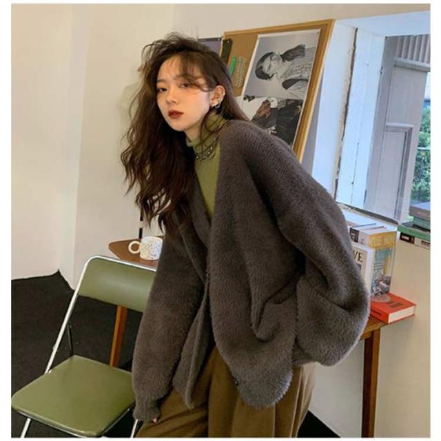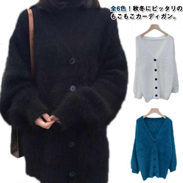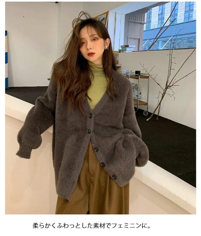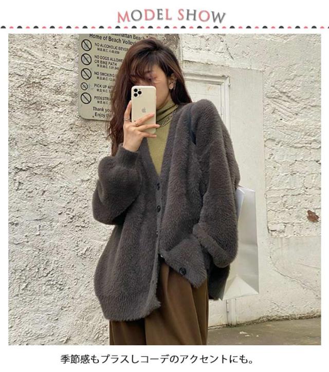 ニットカーディガン ミンクファー ミンクファー フェイクファー ボリューム レディース 秋冬 ふわふわ シャギーニットカーディガン Vネック 羽織り ニットトップス 防寒 ミドル丈 S M L XL