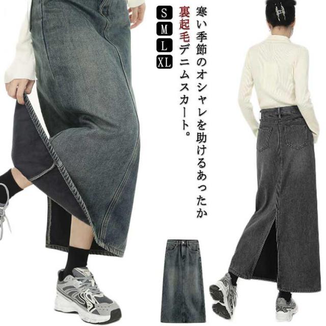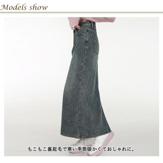 裏起毛 カジュアル デニム デニムスカート デニムスカート 伸びる 体型カバー マキシ ストレッチ フレアスカート 防寒 あったか ボトムス ゆったり デニムスカート タイトスカート ロング 裏ボアスカート 着痩せ OL 大人 通勤 冬 秋 暖かい シンプル オシャレ