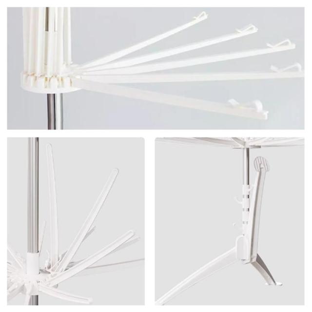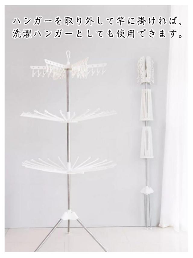 | サイズについての説明 | 展開サイズ:直径約80*高さ約170cm 上層:ハンガー4本、ピンチ24個 中層:ハンガー16本 下層:ハンガー16本 |