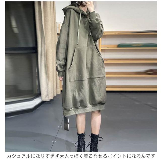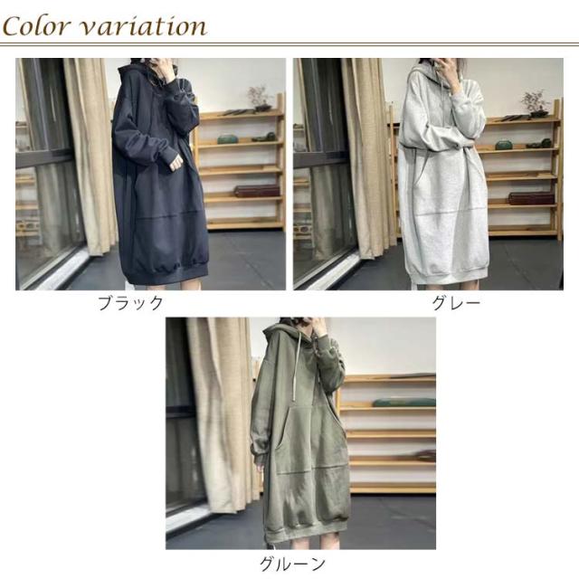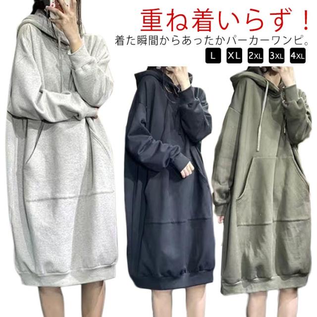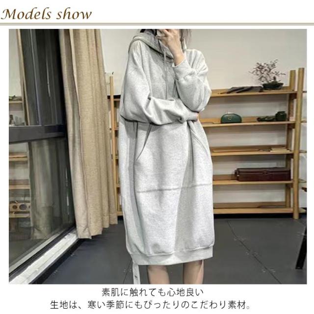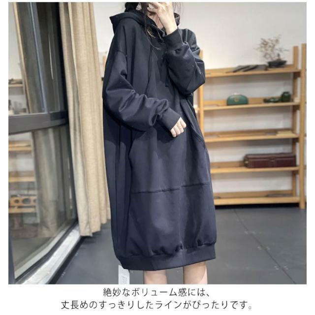 ワンピース パーカーワンピース レディース パーカー ロングパーカー ロングワンピース 裏シャギー 裏起毛 パーカーワンピ フード付き ミディアム 長袖 ロングパーカー ブルオーバー 厚手 秋冬物 無地 スウェット 大人 マタニティー パーカーワンピ 黒 温か 秋 冬