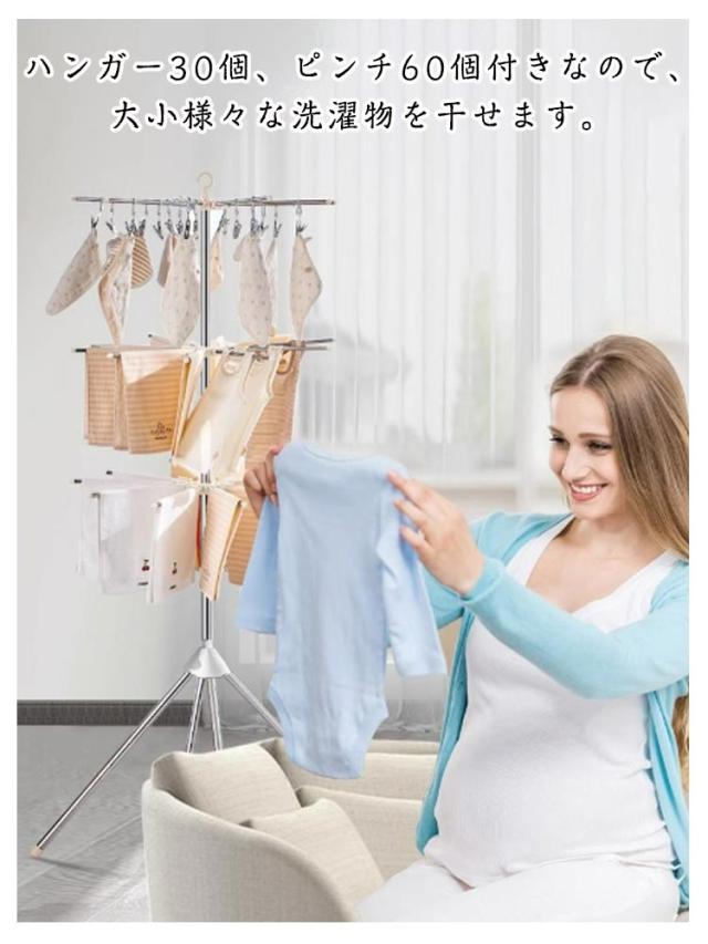 | サイズについての説明 | 展開サイズ:直径約56*高さ約170cm 上層:ハンガー10本、ピンチ30個 中層:ハンガー10本、ピンチ30個 下層:ハンガー10本 |